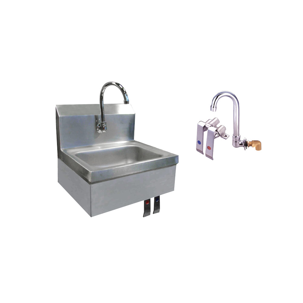 Hand sink with faucet, bowl dimension: 9.75″ x 14″ x 5.25″. Made of high quality stainless steel.